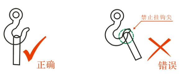 4.吊裝帶使用時(shí),將吊裝帶直接掛入吊鉤受力中心位置,不能掛在吊鉤鉤尖部位。