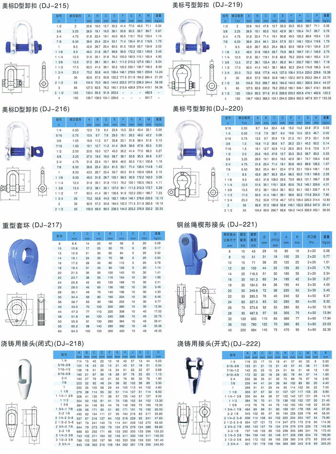 卸扣主要有:D型卸扣、弓形卸扣、u型卸扣等。